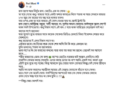 পরীমণি ফেসবুক পোস্টে ধুয়ে দিলেন রাজকে!