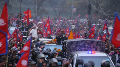 রোববার (৯ মার্চ) নেপালের সাবেক রাজা জ্ঞানেন্দ্র শাহকে স্বাগত জানাতে ত্রিভুবন আন্তর্জাতিক বিমানবন্দরে জড়ো হয়ে বিক্ষোভ করেন উপস্থিত জনতা। এ সময় ‘রাজার জন্য রাজপ্রাসাদ খালি করুন’, ‘রাজতন্ত্র ফেরত চাই’, ‘হিন্দু ধর্ম রাষ্ট্রধর্ম হোক’ ইত্যাদি স্লোগান দেন তারা।