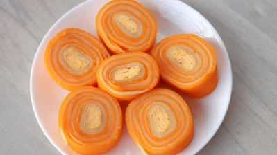 এরপর একটি কড়াইয়ে সামান্য তেল দিয়ে তাতে ২টি ডিমের অমলেট তৈরি করুন। এক্ষেত্রে লক্ষ্য রাখবেন কুসুম যেন ভেঙে না যায়। এখন ডিমের ওপর ২ চামচ চিনি দিয়ে ভেজে নিতে হবে। ডিম ভাজা হলে লম্বা করে ফোল্ড করে নিতে হবে। এবার কড়াইয়ে তেল ব্রাশ করে নিয়ে তাতে এক চামচ ব্যাটার পাটিসাপটার মতো পাতলা করে ঢেলে দিতে হবে। অল্প আঁচে ৪/৫ মিনিট ঢাকনা দিয়ে ঢেকে রাখতে হবে।