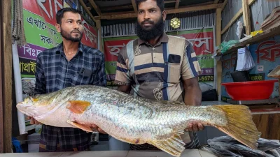 জেলে আল-আমিন জানান, এত বড় মাছ পাওয়া সত্যিই আশ্চর্যজনক। প্রতিদিনের মতো মাছ ধরতে গিয়ে হঠাৎই মাছটি ভেসে উঠতে দেখি। পরে জাল ফেলে এটিকে ধরতে সক্ষম হই। মাছটি কিছুটা অসুস্থ অবস্থায় ছিলো বলে ধারণা করছি।