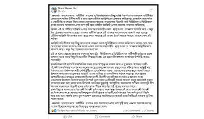 এদিকে নুরুল হক নুরের এমন পোস্টের পর মন্তব্যের ঘরে সৃষ্টি হয়েছে নানা আলোচনা সমলোচনা।