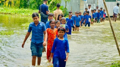 শিশু শ্রেণি ও প্রাক-প্রাথমিক শিক্ষার্থীরা প্রতিদিন ভেজা পোশাক আর স্যাঁতসেঁতে বইখাতাসহ ক্লাসে উপস্থিত হয়। অনেকে আবার পথে পড়ে যায় পানিতে। শিক্ষার্থীদের কষ্ট দেখে স্কুলের প্রহরী হাবিল শেখ এবং কিছু অভিভাবক সন্তানদের কোলে করে স্কুলে পৌঁছে দিচ্ছেন। ক্লাস শেষে আবার কোলে করেই বাড়ি ফিরিয়ে নিয়ে আসেন।