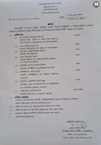 মন্ত্রিপরিষদের অতিরিক্ত সচিব (কমিটি ও অর্থনৈতিক) মো. হুমায়ুন কবির স্বাক্ষরিত এক বিজ্ঞপ্তিতে এই তথ্য জানানো হয়।