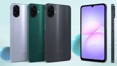 দেশের বাজারে আনুষ্ঠানিকভাবে গ্যালাক্সি এ সিরিজের সর্বশেষ সংযোজন গ্যালাক্সি এ০৭ (Galaxy A07) উন্মোচন করেছে স্যামসাং। তিনটি সংস্করণে বাজারে এসেছে স্মার্টফোনটি- ৪ জিবি র্যাম ও ৬৪/১২৮ জিবি স্টোরেজ এবং ৬ জিবি র্যাম ও ১২৮ জিবি স্টোরেজ। কয়েকটি আকর্ষণীয় রঙে ফোনটি বাজারে এনেছে স্যামসাং- সবুজ, কালো ও হালকা বেগুনি।