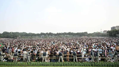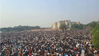 কয়েক লাখ মানুষের অংশগ্রহণে জাতীয় সংসদ ভবন এলাকায় ইনকিলাব মঞ্চের মুখপাত্র শহীদ শরিফ ওসমান হাদির জানাজা অনুষ্ঠিত হয়েছে। জানাজায় অংশগ্রহণকারীরা বলছেন, এটাই স্মরণকালের সবচেয়ে বড় জানাজা। জানাজায় অংশগ্রহণকারী অনেকেই বলছেন, শহীদ ওসমান হাদির জানাজায় ৭ থেকে ৮ লাখ মানুষ অংশ নিয়েছেন।