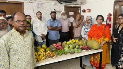 বৃত্তি প্রদান অনুষ্ঠান শেষে উপস্থিত অতিথিরা ফল উৎসবে যোগ দেন।