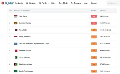 আইকিউএয়ারের একিউআই স্কোর অনুযায়ী-