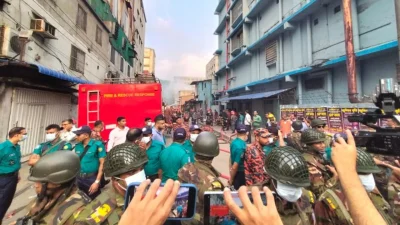 তিনি বলেন, ‘আমার ভাগনি মাহিরা পোশাক কারখানার তিন তলায় কাজ করতো। তাকে খুঁজে পাচ্ছি না। আগুন লাগার পর থেকে আমরা তাকে খুঁজছি। আশপাশের হাসপাতালেও খোঁজ নিয়েছি, কোথাও পাইনি। ফায়ার সার্ভিসের সঙ্গে কথা বলেছি, তারা বলেছেন ধৈর্য ধরতে।’