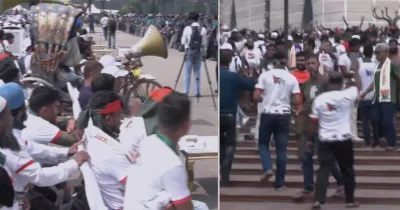 শুক্রবার ভোরে আলো ফোটার পরেই বিক্ষোভকারীরা সংসদ ভবনে প্রবেশের ফটক টপকে ভেতরে প্রবেশ করেন এবং একপর্যায়ে দক্ষিণ প্লাজায় মঞ্চের সামনে চলে যান। আইনশৃঙ্খলা রক্ষাকারী বাহিনীর সদস্যরা তাদের বাধা দেওয়ার চেষ্টা করলেও, বিক্ষোভকারীরা অতিথিদের চেয়ারে বসে পড়েন।