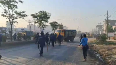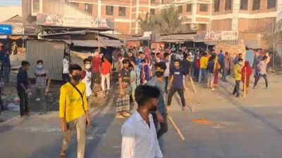 শিল্প পুলিশের সহকারী পুলিশ সুপার আসাদ জানান, নতুন কাঠামোয় বেতনের দাবি জানিয়ে শনিবার সকাল থেকে মহাসড়ক অবরোধ করে বিক্ষোভ করে শ্রমিকরা। এতে মহাসড়কে দীর্ঘ যানজটের সৃষ্টি হলে দুর্ভোগে পড়ে যাত্রীরা। এক পর্যায়ে আন্দোলনরত শ্রমিকদের মহাসড়ক থেকে সরিয়ে দেওয়া হয়। আধঘণ্টা পর তারা ফের সংবদ্ধ হয়ে গাড়িতে ভাঙচুর চালায়। পরে পুলিশকে লক্ষ্য করে ইট পাটকেল ছুঁড়লে পুলিশ টিয়ার শেল নিক্ষেপ করে। এখন পরিস্থিতি শান্ত রয়েছে। শ্রমিকরা আশপাশে ছড়িয়ে ছিটিয়ে রয়েছে।