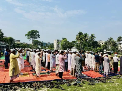 মোনাজাতে অংশ নেওয়া মুসল্লিরা কান্নায় ভেঙে পড়েন। মহান সৃষ্টিকর্তার কাছে ক্ষমা প্রার্থনা করে অসহনীয় পরিস্থিতি থেকে পরিত্রাণের জন্য দোয়া করেন। দোয়া সময় পাঞ্জাবি ও টুপি উল্টো করে পরেন মুসল্লিরা।