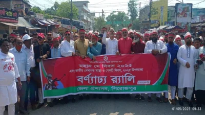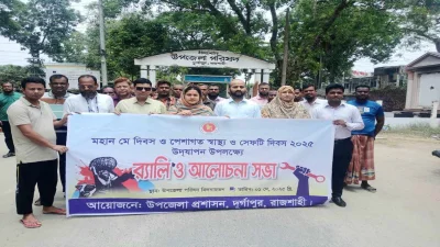 রাজশাহীর দুর্গাপুরে উপজেলা প্রশাসনের উদ্যোগে যথাযোগ্য মর্যাদায় পালিত হয়েছে মহান মে দিবস ও পেশাগত স্বাস্থ্য ও সেফটি দিবস ২০২৫। এ উপলক্ষে বৃহস্পতিবার (১ মে) সকাল ১১টায় একটি বর্ণাঢ্য র্যালি ও আলোচনা সভার আয়োজন করা হয়।
