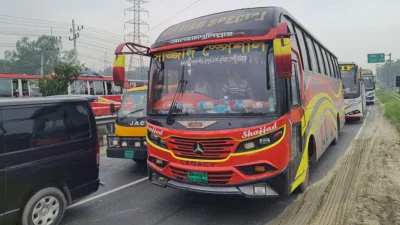 ঢাকা-টাঙ্গাইল মহাসড়কে ২৫ কিলোমিটার এলাকাজুড়ে তীব্র যানজটের সৃষ্টি হয়েছে। এতে ভোগান্তিতে পড়েছেন ঘরমুখো মানুষ।