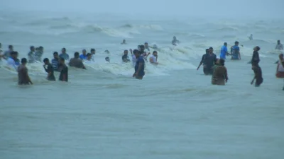 বৃষ্টি, সাগরের বড় ঢেউ, প্রচন্ড বাতাস- সবকিছু উপেক্ষা করে পর্যটকরা ভিড় জমিয়েছেন কুয়াকাটা সৈকতে। বিরূপ আবহাওয়া উপেক্ষা করে পানিতে নেমে হইচই করছেন ভ্রমণপিপাসুরা।