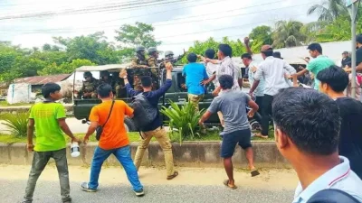 এদিকে সমাবেশ শেষ করে ফেরার পথে বিক্ষুব্ধরা সেনাবাহিনীর টহল গাড়ীতে ইটপাটকেল নিক্ষেপ করে হামলা চালায়। এতে গাড়ি ভাংচুর ছাড়াও রক্তাক্ত হয় সেনা সদস্য।