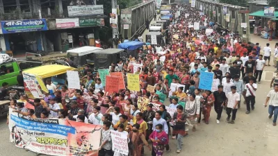 খাগড়াছড়ি সদরে স্কুলছাত্রীকে ধর্ষণের প্রতিবাদ ও দোষীদের গ্রেপ্তারের দাবিতে বিক্ষোভ মিছিল ও মহাসমাবেশ হয়েছে।
