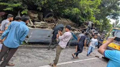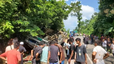 খাগড়াছড়ির মাটিরাঙ্গা উপজেলার সাপমারায় যাত্রীবাহী (শান্তি পরিবহন) বাস নিয়ন্ত্রণ হারিয়ে উল্টে গিয়ে ২ যাত্রী নিহত হয়েছেন। এতে আহত হয়েছে আরও অন্তত ২০ জন যাত্রী।