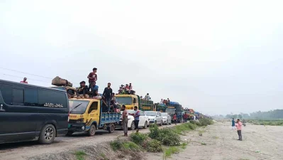 শুক্রবার (১৪ জুন) মধ্যরাত থেকে মহাসড়কে যানজটের সৃষ্টি হয়।