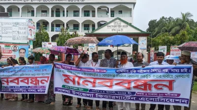 সোমবার (৪ আগস্ট) সকালে সালথা উপজেলা কিন্ডারগার্টেন এসোসিয়েশনের ব্যানারে উপজেলা পরিষদ চত্বরে এ মানববন্ধন অনুষ্ঠিত হয়।