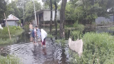 স্থানীয় বাসিন্দারা জানান, অতি বর্ষণের ফলে সেচ প্রকল্পের অভ্যান্তরে পানি বেড়ে অধিকাংশ ঘরবাড়ি পানিতে তলিয়ে গেছে। ফলে এখানে মানুষের দুর্ভোগ চরম আকার ধারণ করছে।
