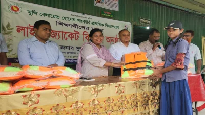 জেলা প্রশাসনের আয়োজনে ও ইউনিয়ন পরিষদের সহযোগিতায় লাইফ জ্যাকেট বিতরন অনুষ্ঠানে প্রধান অতিথি ছিলেন সদর উপজেলা নির্বাহী কর্মকর্তা(ইউএনও) মারিয়া হক। সহকারী উপজেলা প্রাথমিক শিক্ষা অফিসার অধীর কুমার বিশ্বাসের সঞ্চালনায় বিশেষ অতিথি ছিলেন জেলা প্রাথমিক শিক্ষা কর্মকর্তা মো. তবিবুর রহমান।