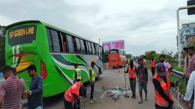 স্থানীয়রা জানান, একটি মোটরসাইকেলকে সাইড দিতে গিয়ে প্রথমে একটি বাস নিয়ন্ত্রণ হারিয়ে সড়কের ডিভাইডারে আছড়ে পড়ে। এর পরপরই আরও ৩টি পরিবহন দুর্ঘটনার শিকার হন। ৩টি যাত্রীবাহী বাসের কমপক্ষে ২০ যাত্রীই আহত হয়েছেন। কেউ মাথায় আঘাত পেয়েছেন, কেউ হাত-পায়ে। তবে কেউই গুরুতর আহত নন।