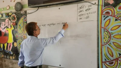 ঘড়ির কাঁটায় সকাল ৮টা। পাঠদান শুরু হতে তখনও বাকি প্রায় এক ঘণ্টা। এরই মধ্যে আসতে শুরু করেছে ছাত্রছাত্রীরা। বিদ্যালয়ের প্রধান শিক্ষক এসে হাতে তুলে নিলেন ঝাড়ু। আশপাশ পরিষ্কার করছেন তিনি। একটু দূরে দেখা গেলো শিক্ষার্থীরা দল বেঁধে বিদ্যালয়ের এসে আঙিনা পরিষ্কারে ব্যস্ত। আনন্দঘন পরিবেশে চলছে সমন্বিত উদ্যোগ। পতাকা বাঁধা থেকে ঘণ্টা-বেল বাঁধা সব কাজই নিজ হাতে করছেন বিদ্যালয়ের প্রধান শিক্ষক।
