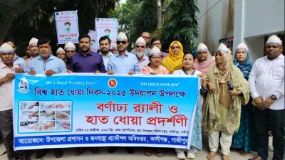 “হাত ধোয়ার নায়ক হোন”—এই প্রতিপাদ্যে জাতীয় স্যানিটেশন মাস ও বিশ্ব হাত ধোয়া দিবস উপলক্ষে গাজীপুরের কালীগঞ্জে বর্ণাঢ্য র্যালি, হাত ধোয়া প্রদর্শনী, সাবান বিতরণ ও আলোচনা সভা অনুষ্ঠিত হয়েছে।