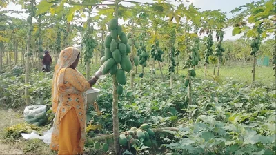 পেঁপে বাগানে আছিয়া বেগম নামের এক নারী কাজ করছেন। তিনি বলেন, আমি ও আমার স্বামী ১০ বছর ধরে পেঁপের আবাদ করে আসছি। এই পেঁপে চাষের আগে অন্যের জমিতে কাজ করতো আমার স্বামী। তেমন কোন জায়গ- জমি ছিলো না আমাদের। তবে অন্যের জমি ভাড়া নিয়ে প্রথমে পেঁপের আবাদ করি। পেঁপে বিক্রির টাকা জমিয়ে সাড়ে ৫ বিঘা জমি কিনেছি ১০ বছরে। এখন নিজের জমিতে পেঁপের আবাদ করছি, ঘরের-বাইরের দুজনেই একসঙ্গে কাজ করছি।