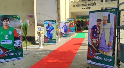 লাল গালিচা আর জমকালো আয়োজনে সাফ জয়ী সাতক্ষীরার কৃতি তিন নারী ফুলবলার অধিনায়ক সাবিনা, মাসুরা ও আফঈদাকে গণসংবর্ধনা দেওয়া হয়েছে।