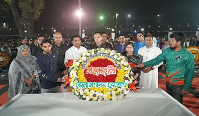 এছাড়া বৈষম্যবিরোধী ছাত্র সংগঠন, চুয়াডাঙ্গা প্রেসক্লাবের পক্ষে সভাপতি রাজীব হাসান কচি ও সাধারণ সম্পাদক বিপুল আশরাফসহ সকল সদস্যগণ এবং জেলা প্রেস ক্লাবের পক্ষ থেকে সভাপতি মানিক আকবর ও সাধারণ সম্পাদক কামরুজ্জামান সেলিম শহীদ বেদিতে পূস্পমাল্য অর্পণ করেন।