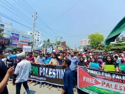 বক্তারা বলেন, গাজায় মুসলিম ভাই-বোনদের ওপর ইসরায়েলি হামলা একটি মানবতাবিরোধী অপরাধ। বিশ্ব সম্প্রদায়ের উচিত এখনই নির্দিষ্ট ও কার্যকর ভূমিকা রাখা। সামর্থ্য থাকলে সাতক্ষীরার ২০ হাজার ছাত্র আজই ফিলিস্তিনে গিয়ে অংশ নিতো এই বর্বরতার বিরুদ্ধে লড়াইয়ে।