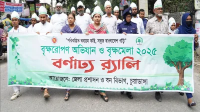 ‘পরিকল্পিত বনায়ন করি, সবুজ বাংলাদেশ গড়ি’- এ শ্লোগানকে সামনে রেখে চুয়াডাঙ্গায় সপ্তাহব্যাপী বৃক্ষরোপন অভিযান ও বৃৃক্ষমেলার উদ্বোধন করা হয়েছে।