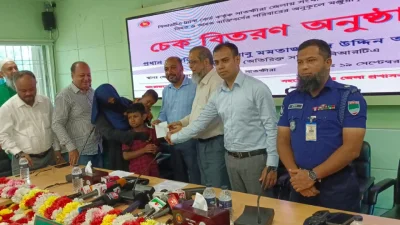 এ সময় নিহতদের পরিবারের পক্ষ থেকে বিআরটিএ চেয়ারম্যানের হাত থেকে চেক গ্রহণ করেন- নাজমা খাতুন, শাহানা খাতুন, আব্দুল খলিল সরদার, অপূর্ণা রেজা ও ফাতেমা খাতুন। এছাড়া আহত জুলফিকার আলমের হাত এক লাখ টাকার চেক তুলে দেওয়া হয়।