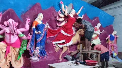 শারদীয়া উৎসবের আরও ৩ দিন বাকি থাকলেও শিল্পীরা প্রতিমা গড়ার কাজে এগিয়ে চলেছেন। জেলা হিন্দু ধর্মাবলম্বীদের শারদীয় উৎসবের আমেজ অগ্রিম বইতে শুরু করছে। স্থানীয় কারীগর ছাড়া বিভিন্ন স্থান থেকে প্রতিমা তৈরি করতে তারা এক প্রান্ত থেকে দেশের আরএক প্রান্তে চলে আসেন।