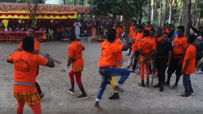 রোববার (২৩ নভেম্বর) বিকেলে ঢাক, ঢোল ও কাসার ঘণ্টার সঙ্গে নৃত্য আর অঙ্গভঙ্গি প্রদর্শন করেন খেলোয়াড়রা। এরপর শুরু হয় মূল আকর্ষণ। দুইজন লাঠিয়াল বাদ্যের তালে ঝাঁপিয়ে পড়েন একে অন্যের উপর। আত্মরক্ষার পাশাপাশি প্রতিপক্ষকে কাবু করতে মেতে ওঠেন তারা। প্রতিপক্ষের আঘাত প্রতিরোধে ব্যর্থ হলেই যেন আনন্দে ফেটে পড়েন দর্শকরা।