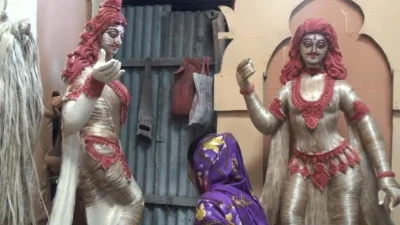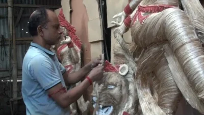 দরজায় কড়া নাড়ছে সনাতন ধর্মাবলম্বীদের সর্ববৃহৎ উৎসব শারদীয় দুর্গাপূজা। মণ্ডপে মণ্ডপে চলছে শেষ মুহূর্তের প্রস্তুতি। এরই মাঝে নাটোরে তৈরি হয়েছে ব্যতিক্রমী এক দুর্গাপ্রতিমা, যা ইতোমধ্যেই দর্শনার্থীদের নজর কাড়ছে।