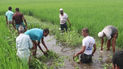 বাচ্চু হোসেন নামে এক কৃষক বলেন, দীর্ঘদিন ধরে এই খালের আগাছা পরিষ্কার করা হয় না। ফলে পানি নিষ্কাশন বন্ধ হয়ে ফসলি মাঠ তলিয়ে যায়। তাই নিজেরাই খাল পরিষ্কার শুরু করেছি।