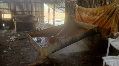 রাজশাহীতে ভেজাল গুড় তৈরির কারখানার সন্ধান পেয়েছে র্যাব ও জাতীয় ভোক্তা অধিকার সংরক্ষণ অধিদপ্তর। বুধবার (২৬ নভেম্বর) সকালে বাঘা উপজেলার আড়ানি শাহাপুর এলাকায় এ অভিযান চালানো হয়। এ সময় রস ছাড়াই গুড় তৈরির দৃশ্য দেখা যায়।