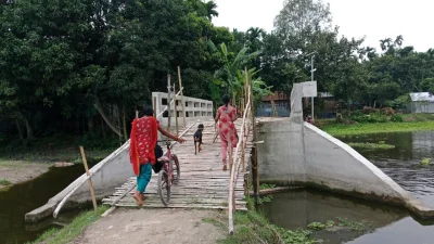 প্রায় এক বছর ধরে প্রতিদিন বাঁশের মই বেয়ে পারাপার হওয়া মানুষের একটাই দাবি, ‘অবিলম্বে সংযোগ সড়ক নির্মাণ করুন, আমাদের দুর্ভোগ থেকে মুক্তি দিন।’
