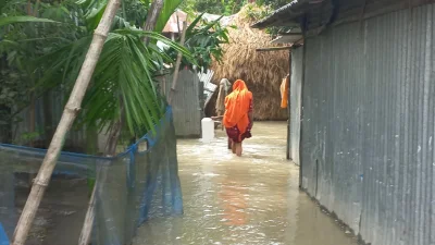 বসত বাড়িতে পানি উঠে যাওয়ায় দুর্ভোগে পড়েছেন দুর্গত এলাকার মানুষ। গবাদি পশু নিয়ে বিপাকে পড়েছেন অনেকে। ঘরবাড়িতে পানি উঠায় রাস্তায় চুলা জ্বালিয়ে কেউ করছেন রান্নার কাজ, আবার কেউ ওই রাস্তার ধারে একচালা ঘর করে গরু ছাগল নিয়ে একই ঘরে বিছানা পেতেছেন।