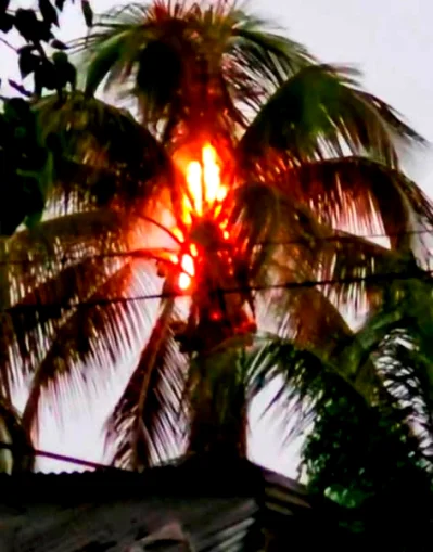 প্রত্যক্ষদর্শীদের ভাষ্যমতে, বিকট শব্দে কেঁপে ওঠে এলাকা, আর নারিকেল গাছটির মাথায় মুহূর্তের জন্য আগুনের ঝলক দেখা যায়।