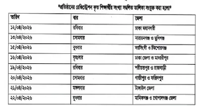 জেলাভিত্তিক কার্ড বিতরণের সময়সূচি