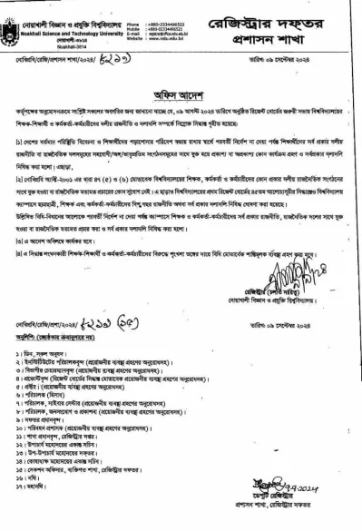 সোমাবর (৯ সেপ্টেম্বর) রিজেন্ট বোর্ডের জরুরি সভায় এ সিদ্ধান্ত গৃহীত হয়। বিশ্ববিদ্যালয়ের রেজিস্ট্রার স্বাক্ষরিত এবং রেজিস্ট্রার দপ্তরের প্রশাসন শাখা কর্তৃক প্রকাশিত এক অফিস আদেশ হতে এ তথ্য জানা যায়।