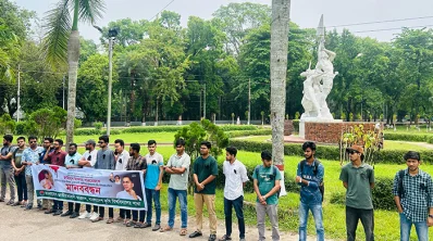 সোমবার (২১ এপ্রিল) দুপুর ১২টায় বিশ্ববিদ্যালয়ের বিজয় ৭১ ভাস্কর্যের সামনে মানববন্ধনটি অনুষ্ঠিত হয়। এ সময় উপস্থিত ছিলেন শাখা ছাত্রদলের আহ্বায়ক মো. আতিকুর রহমান, সদস্য সচিব শফিকুল ইসলাম শফিক, সদস্য মিজানুর রহমান স্বপ্নীল, ইসমাইল হোসেন হৃদয়সহ বিভিন্ন হলের প্রায় শতাধিক নেতাকর্মী।