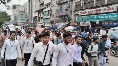 রোববার (১৩ জুলাই) দুপুরে ঢাকা কলেজের প্রধান ফটকের সামনে বিক্ষোভ মিছিল ও সমাবেশ করেন শিক্ষার্থীরা।