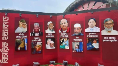 ঢাকা বিশ্ববিদ্যালয়ের টিএসসিতে ছাত্রশিবিরের আয়োজিত প্রদর্শনী ঘিরে ‘মবের’ মুখে জামায়াতের সাবেক শীর্ষ নেতাদের ছবি সরিয়ে নতুন ফটোফ্রেম যুক্ত করেছে সংগঠনটি। বামপন্থী বিভিন্ন ছাত্রসংগঠনের আপত্তি ও ক্ষোভের মুখে মঙ্গলবার (৫ আগস্ট) সন্ধ্যায় ছবি সরিয়ে নেওয়ার পর, মঙ্গলবার রাতেই প্রদর্শনীতে যুক্ত হয় নতুন কিছু ছবি।