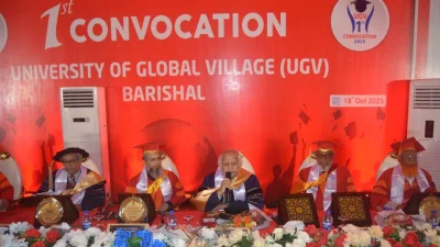 বরিশালে বেসরকারি বিশ্ববিদ্যালয় ইউনিভার্সিটি অব গ্লোবাল ভিলেজে (ইউজিভি) প্রথমবারের মতো সমাবর্তন অনুষ্ঠিত হয়েছে।