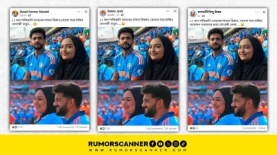 রিউমর স্ক্যানার টিমের অনুসন্ধানে দেখা যায়, স্বামী জাহির ইকবালের সাথে হিজাব পরিহিত অবস্থায় বলিউড অভিনেত্রী সোনাক্ষী সিনহা ভারত-পাকিস্তান ক্রিকেট ম্যাচ দেখার ছবিটি বাস্তব নয় বরং ছবিগুলো এআই বা কৃত্রিম বুদ্ধিমত্তা প্রযুক্তি ব্যবহার করে তৈরি করা হয়েছে।
