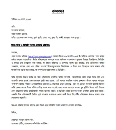 সোমবার (২১ এপ্রিল) তার স্বাক্ষরিত এক বিজ্ঞপ্তিতে এ প্রতিবাদ জানানো হয়। এতে তিনি প্রতিবেদনটিকে জনমনে বিভ্রান্তি সৃষ্টিকর ও উদ্দেশ্য প্রণোদিত বলে আখ্যায়িত করেছেন।